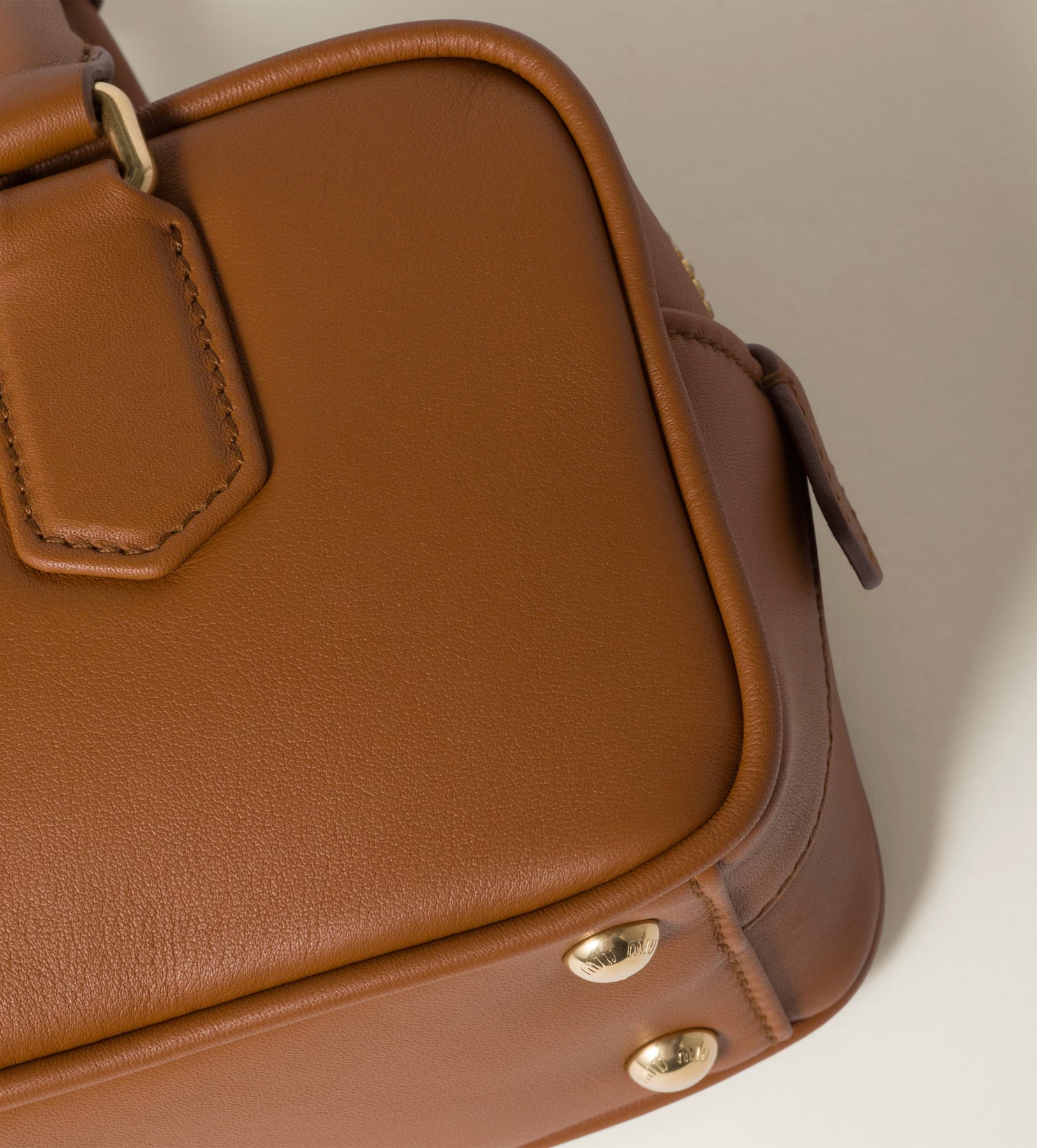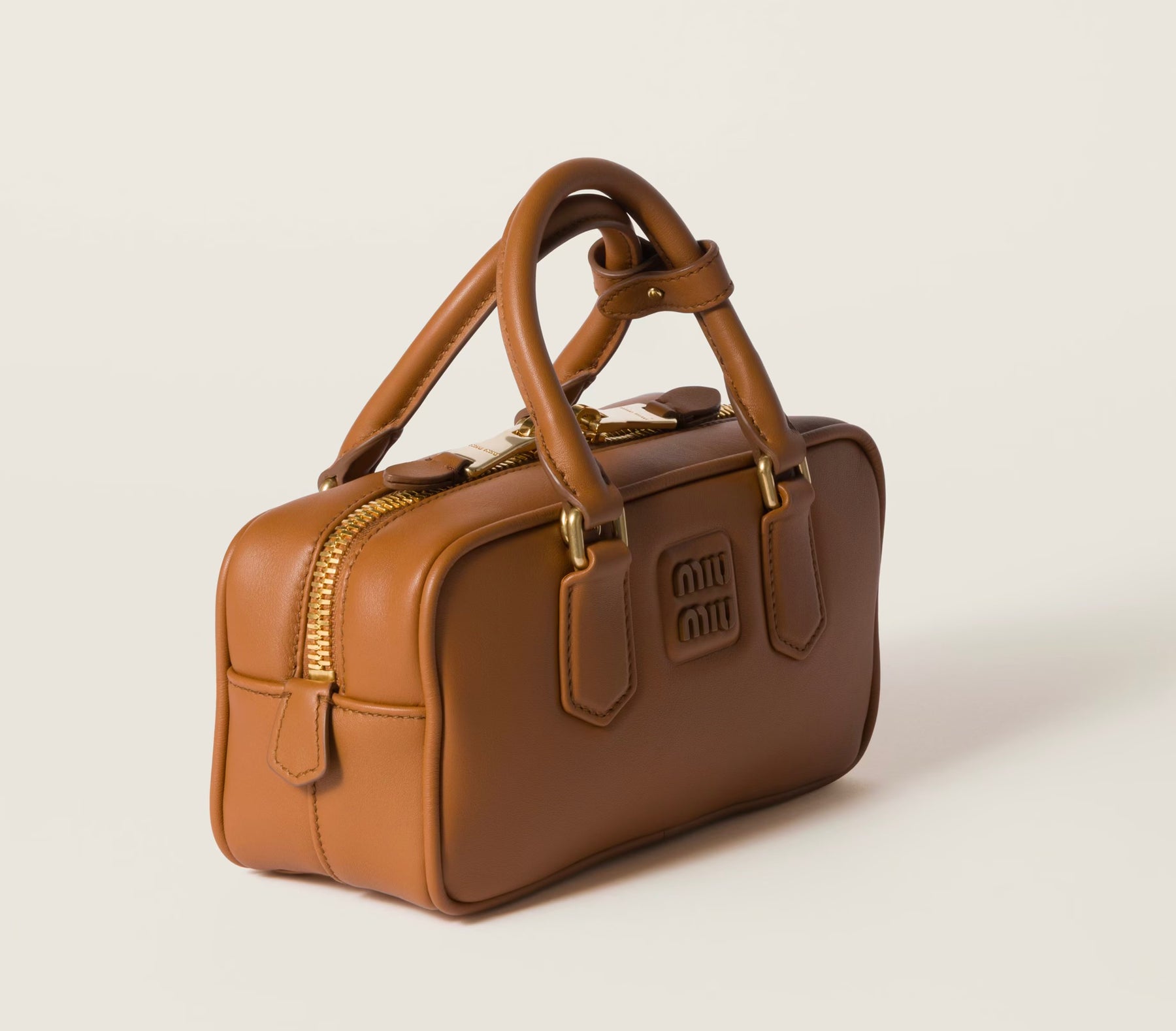 This Arcadie leather bag expresses a notion of fashion as a means of translating a reaction to current reality into material form. The light padding gives the bag a voluminous look and a cosmopolitan style. The lettering logo, which echoes the finishes of the metal hardware, crosses the boundaries between function and decoration and helps to define the distinctive and iconic aesthetic of the top-handle bag.