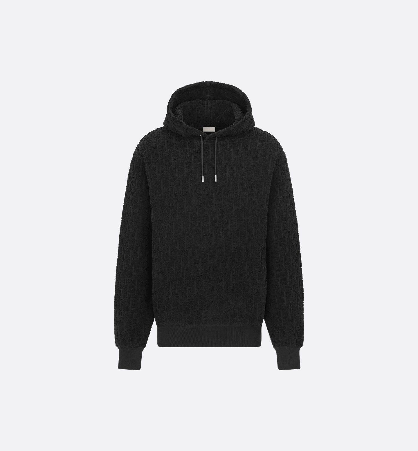 The hooded sweatshirt is crafted in black cotton fleece. Soft and comfortable, it is enhanced by a tonal monogram Icon embroidery on the chest. Its regular fit, completed with ribbed cuffs and hem, will pair with any casual attire.