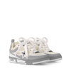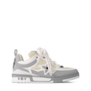 This colorblock version of the LV Skate sneaker comes in a mix of nubuck calf leather and technical mesh. Inspired by Nineties' skate shoes, this model is notable for its thick double laces and exaggerated, padded collar and tongue. It has an oversized Monogram Flower on the side and an LV Vuitton logo on the tongue.