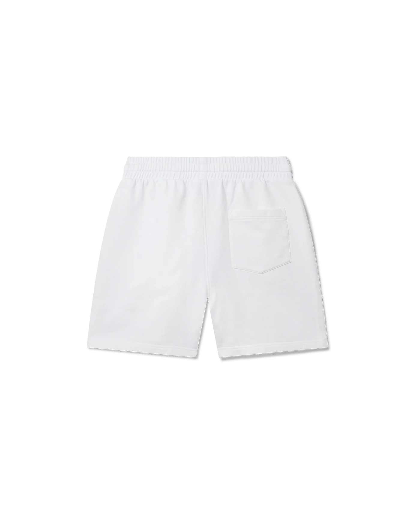 The Casablanca Avenida sweatshorts in white feature a seasonal screen-printed artwork where the free flow of nature meets the structure of manmade design The arch, an abstract symbol of strength. Completed with gold-tipped drawstring fastening, side pockets and Casablanca Paris branded label. Designed for a classic fit to finish on the waist.